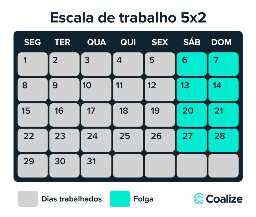• Folgas Consecutivas: A prioridade é que as duas folgas sejam consecutivas (preferencialmente sábado e domingo), embora setores de serviços e comércio possam adotar modelos de revezamento.